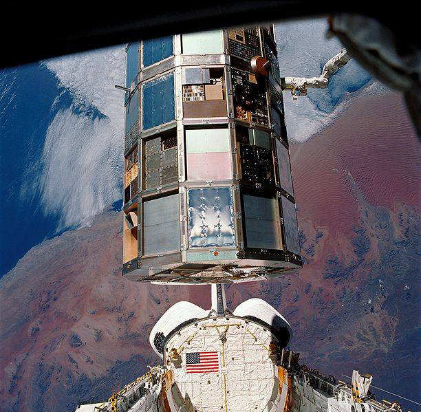 LDEF-Start am 6. April 1984: Nach einem glänzenden Start des Space Shuttle, "Challenger" kam es bald darauf zur Öffnung der Nutzlast-Shuttle-Bucht und LDEF (Long Duration Exposure Facility) wurde der freien Weltraumumgebung ausgesetzt.
