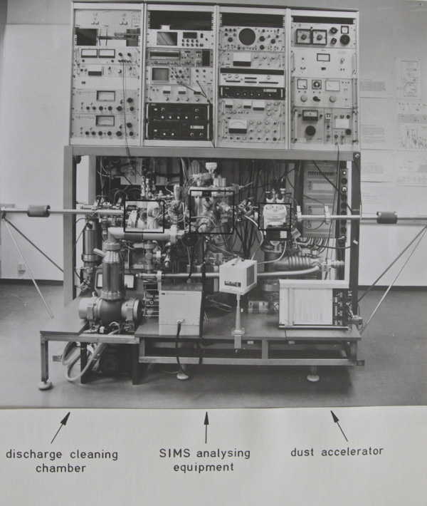 Nach meiner Promotion spielte die Vorbereitung für eine Kometenmission nach Giotto zu Halley eine herausragende Rolle. Nach diesem erfolgreichen „Blitzbesuch" bei Halley war der Bedarf eine Rendezvous- bzw. Kometenproben- Rückführmission CNSR - zunächst gemeinsam mit der NASA - gewachsen. Dazu baute ich Ende der 70er Jahre des letzten Jahrtausends eine Kometenstaub-Simulation zur chemischen und isotopischen Analyse von Kometenstaubteilchen auf. Sie bestand aus einer